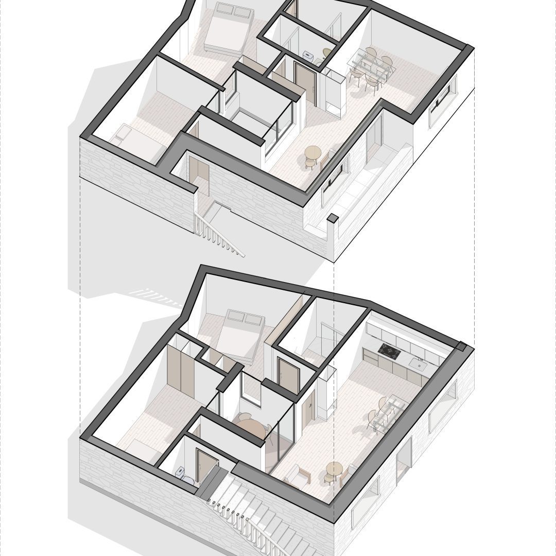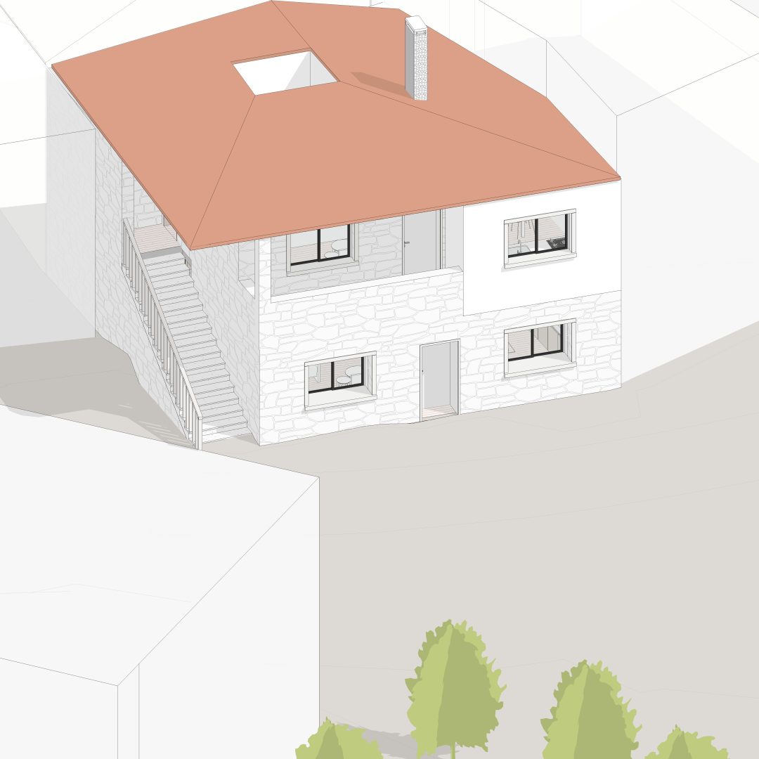 Neste projeto, com paredes em pedra de granito, o cliente demonstrou a sua preocupação em utilizar apenas matérias primas que provenham na pedreira da freguesia, assim como restantes materiais locais, apoiando assim a economia local.